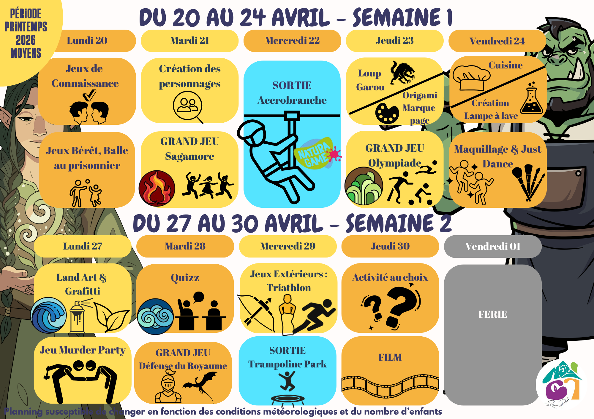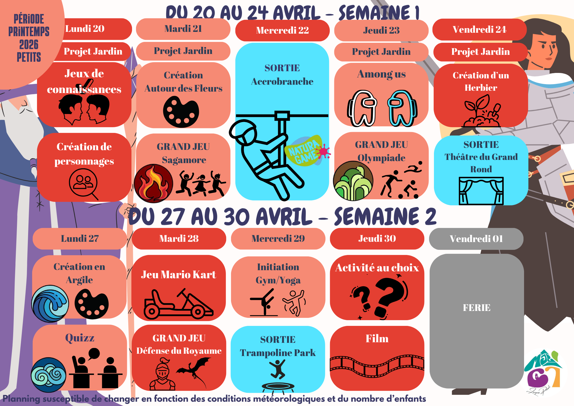 – Pas d’accueil à Noël et en Août.